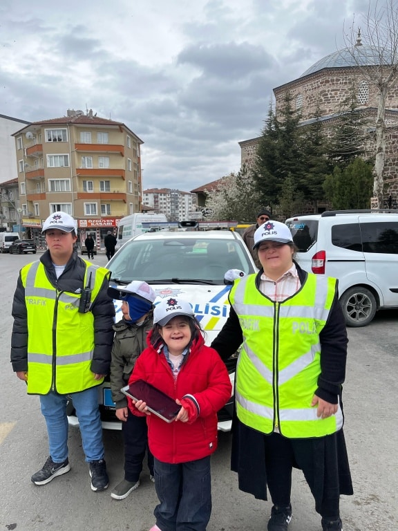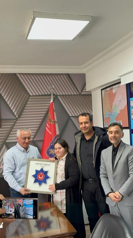 Okulumuzda 21 Mart Dünya Down Sendromu Farkındalık Günü kutlamaları ve çeşitli etkinlikler yapıldı. Bu farkındalık gününde ilçe emniyet müdürümüz Sn. Murat ÖNDER, müdür yardımcımız ve polis memuru arkadaşlar bizi yalnız bırakmadı. Down sendromu olan öğrencilerimize polis kıyafetleri giydirilerek ilçemizde trafik kontrolü yaptılar. Daha sonra ilçe karakolunu gezdiler ve ilçe emniyet müdürümüz Sn. Murat ÖNDER makamında çocuklarımızla bir araya gelerek öğrencilerimize hediyeler verildi. Günün sonunda bu ince düşüncelerinden dolayı ilçe emniyet müdürümüze Bölükbaşıoğlu Özel Eğitim Uygulama Okulu olarak hediyemizi takdim ettik. Müdürümüz Hakan TOPALLI misafirperverliklerinden ötürü başta Emniyet Müdürümüze, müdür yardımcımıza ve polis teşkilatımıza teşekkürlerini iletti.